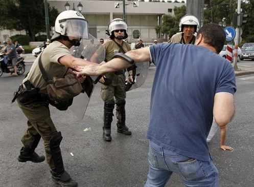 Με αφορμή την δραματική τροπή που παίρνουν οι κινητοποιήσεις στην Ελλάδα, και την σχεδιασμένη, από το ίδιο το κράτος, εκτροπή, αποφασίσαμε να καταγράψουμε τις σκέψεις μας για όσα συμβαίνουν στην χώρα μας σε συνδυασμό με την συνολική παγκόσμια κινητικότητα. Στα Αραβικά κράτη η Νέα Τάξη έχει πετύχει, με τον τρόπο που περιγράψαμε παραπάνω, να δημιουργήσει κοινωνική και πολιτική αποσταθεροποίηση και έχει ήδη στρώσει το χαλί για την επέλαση μιας παγκόσμιας διακυβέρνησης. Μιας παγκόσμιας διακυβέρνησης η οποία σαφώς θα στηριχτεί και από την οικονομική δέσμευση που επιχειρείται και στα κράτη αυτά. Στην Ευρώπη το σκεπτικό που ακολουθείτε δεν έχει να κάνει με δημιουργία πολεμικών γεγονότων αλλά με την δημιουργία ΔΙΚΑΙΟΛΟΓΗΜΕΝΗΣ αγανάκτησης και απέχθειας των πολιτών κάθε χώρας στα τοπικά εθνικά πολιτικά τους συστήματα. Στην Ελλάδα για παράδειγμα εδώ και δεκαετίες προωθήθηκαν στην πολιτική σκηνή διεφθαρμένοι πολιτικοί, ανίκανες πολιτικές ηγεσίες, ανθελληνικές πολιτικές ομάδες και εν τέλει πολιτικά κόμματα τα οποία φρόντισαν με την πολυετή παρουσία τους να κάνουν τον Ελληνικό λαό να αισθάνεται απέχθεια προς την πολιτική, και να σιχαίνεται τους πολιτικούς. Η εσκεμμένη προώθηση ανίκανων και υπόδουλων πολιτικών λοιπόν οδήγησε με μαθηματική ακρίβεια τον λαό στην απέχθεια των εθνικών πολιτικών συστημάτων, γεγονός που θα διευκολύνει όταν χρειαστεί την εγκαθίδρυση μιας Παγκόσμιας Διακυβέρνησης, κατά το ρητό που ακούγεται συχνά από αηδιασμένους πολίτες, «Αφού δεν μπορούν αυτοί, ας φύγουν να έρθουν να μας κυβερνήσουν ξένοι…».