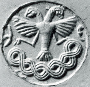 Ο δικέφαλος αετός στους Χεταίους. (1.800 π.Χ., αποτύπωμα σφραγίδας, Μουσείο Μπογάζκιοϊ.) |