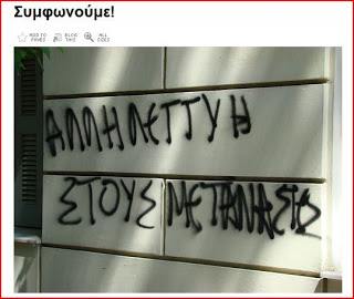 -ΕΙΚΟΝΑ ΔΕΥΤΕΡΗ: “ΑΛΛΗΛΕΓΓΥΗ ΣΤΟΥΣ ΜΕΤΑΝΑΣΤΕΣ” ΚΙ ΑΠΟ ΠΑΝΩ Ο ΤΙΤΛΟΣ “ΣΥΜΦΩΝΟΥΜΕ”.
