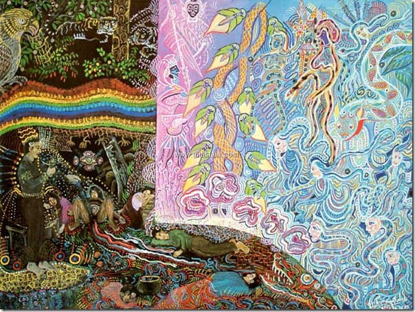 - ‘Ο ενορατικός βλέπει ότι κάθε άνθρωπος βρίσκεται σε επαφή με ό,τι τον περιστοιχίζει όχι μέσω των χεριών του, αλλά μέσω μιας δέσμης από μακριές, λεπτές ίνες που εκτινάσσονται από το κέντρο του υπογαστρίου του προς όλες τις κατευθύνσεις. Αυτές οι ίνες συνδέουν τον άνθρωπο με το περιβάλλον του. Διατηρούν την ισορροπία του, του προσφέρουν σταθερότητα.’