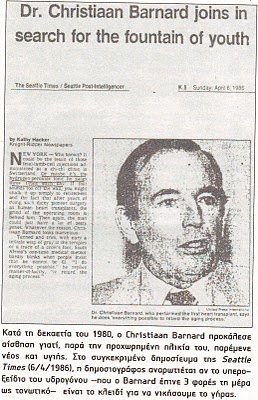 Το 1986, ο γνωστός καρδιοχειρουργός Christiaan Barnard, φημισμένος για το γεγονός ότι πραγματοποίησε την πρώτη μεταμόσχευση καρδιάς, άρχισε να συστήνει τη θεραπεία με υπεροξείδιο του υδρογόνου σε ασθενείς, αφού πρώτα την εφάρμοσε ο ίδιος για να θεραπεύσει την αρθρίτιδα και άλλες ασθένειες που συνοδεύουν το γήρας και έμεινε έκπληκτος με το αποτέλεσμα. Ωστόσο, ο Barnard γελοιοποιήθηκε σε τέτοιο βαθμό από την ιατρική κοινότητα, ώστε αναγκάστηκε να εγκαταλείψει κάθε σχέση του με τη θεραπεία για να διασώσει τη φήμη και τη δουλειά του (Madison Cavanaugh, The one-minutecure: The secret to healing virtually all diseases).