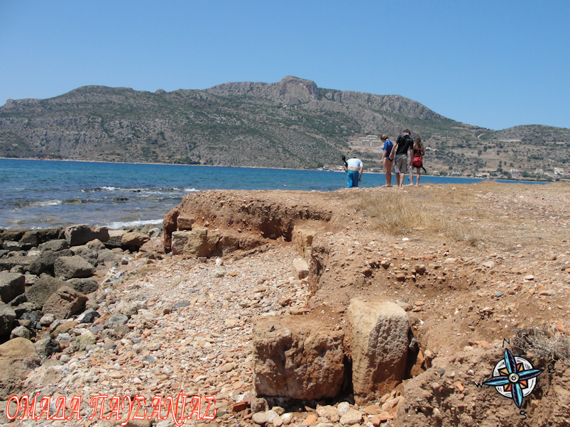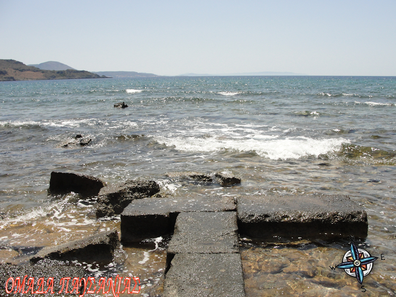 Εκεί που περπατάω μεταξύ ακροθαλασσιάς και στεριάς βλέπω πάνω σε αρχαίους λίθους, στρωμένα δεκάδες όστρακα(αρχαία κεραμικά κομμάτια).