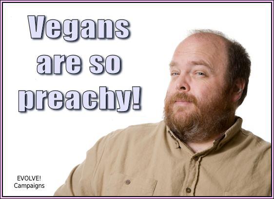 Η χορτοφαγία προάγει την μη-βία και τη συμπόνια και αναγνωρίζει το δικαίωμα όλων των αισθανόμενων ζώων στην ζωή και ότι πρέπει να αντιμετωπίζονται με σεβασμό και δικαιοσύνη .. Είναι επομένως λυπηρό το γεγονός όταν κάποιος υπερασπίζεται το δίκαιο και το δικαίωμα στην ζωή των ζώων να θεωρείται και να κατηγορείεται πως κάνει «κήρυγμα».Είναι επίσης κρίμα όταν οι άνθρωποι νιώθουν τόσο προσβεβλημένοι όταν μαθαίνουν ότι ορισμένες πρακτικές, ωστόσο ευρέως αποδεκτό, είναι άδικες.Θα πρέπει πραγματικά να προσπαθήσουμε να μην δούμε αυτές τις πρακτικές ως προσωπικές επιθέσεις στον εαυτό μας, αλλά να τις αξιολογήσουμε με ανοιχτή και ελεύθερη σκέψη πέρα απο τα κοινωνικά στερεότυπα που μας έχουνε εμφυσήσει απο μικρά παιδιά.Αν όλοι απέφευγαν να μιλήσουν ελεύθερα για πρακτικές όπως τον φυλετικό διαχωρισμό(φυλετικός ρατσισμός) τον μισογυνισμό την δουλεία κ.α. ώστε τα θεσμικά όργανα να κάνουνε κάτι για αυτές τις αδικίες τότε αυτά θα εξακολουθούσαν να θεωρούνταν αποδεκτά σήμερα!