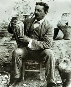 Είχε προηγηθεί η έρευνα του Άγγλου αρχαιολόγου Έβανς, ο οποίος έκαμε ανασκαφές στην Κρήτη. Είχε παρατηρήσει ότι από τους κατασπαρμένους στα διάφορα μουσεία της Ευρώπης σφραγιδόλιθους, εκείνοι που η προέλευσή τους ήταν γνωστή προέρχονταν από την Κρήτη. Έτσι, κατέληξε στο συμπέρασμα, ότι κοιτίδα της γραφής αυτής ήταν η Κρήτη. Γι’ αυτό το 1893 άρχισε τις έρευνες στην Κρήτη.