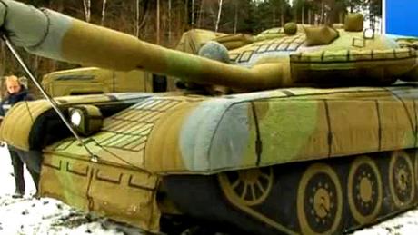 Φουσκωτά τανκς, αεριωθούμενα αεροσκάφη και γενικά φουσκωτό οπλοστάσιο έχει δημιουργήσει ο ρωσικός στρατός. Σύμφωνα με το BBC, τα φουσκωτά είναι κατασκευασμένα από ένα υλικό που ξεγελά τα ραντάρ και τους θερμικούς ανιχνευτές, οι οποίοι νομίζουν ότι πρόκειται για πραγματικά όπλα.