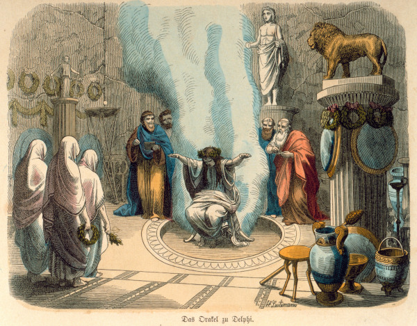 Τό μεγαλύτερο Μαντείο στήν ιστορία τής ανθρωπότητος, τό φημισμένο Μαντείο τών Δελφών, συνδύαζε τήν Μαντική Μανία τού Θεού, τόν ιδανικό τόπο, τόν ομφαλό τής Γής καί βεβαίως τόν Ιερόν ενθουσιασμόν τών Πυθιών. Ό Απόλλων ώς ό φωτίζων τόν κόσμο Θεός, διώκει από τόν ανθρώπινον Νού τά σκότη καί τόν καθιστά ικανό νά προβλέπη τό Μέλλον. Κατά τούς Ηρωϊκούς χρόνους ή Μαντεία δέν συνδέεται μ’ έναν τόπο, αλλά μέ πρόσωπα όπως ο Τειρεσίας, ο Κάλχας, ο Αμφιάραος ή τήν αυθόρμητη μαντεία τών Σιβύλλων. Μέ τήν πάροδο τών χρόνων η Μαντική συνδέθηκε μέ συγκεκριμένη καί καθαγιασμένη τοποθεσία καί η “επώνυμη” Μαντεία υποχώρησε στήν δύναμη τού Θεού καί τού τόπου. Τό άτομο περνά πιά σέ δεύτερη μοίρα καί τό Προφητικό χάρισμα μεταδίδεται μέσω τού Θεού καί τών ιδιοτήτων τού τόπου. “Λάβε λοιπόν υπ’ όψιν σου κι αυτά, πού έχουν ειπωθεί σωστά, καί εννόησε πώς ό εδώ Θεός χρησιμοποιεί τήν Πυθία γιά νά φτάσει στ’ αυτιά μας, όπως ο Ήλιος τήν Σελήνη γιά νά φτάσει στά μάτια μας”