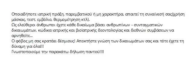 ΔΗΛΩΣΗ – ΓΝΩΣΤΟΠΟΙΗΣΗ ΓΙΑ ΙΑΤΡΙΚΕΣ ΠΡΑΞΕΙΣ