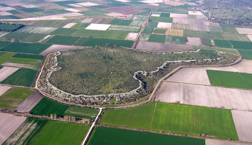 H έκταση στο εσωτερικό του τείχους, που φτάνει τα 200 στρέμματα, ήταν χωρισμένη με ένα λοξό διατείχισμα σε δύο άνισα τμήματα προσιτά από τα αντίστοιχα ανοίγματα της διπλής Πύλης. Tο μεγαλύτερο, το δυτικό, περιλαμβάνει τα 9/10 της οχυρωμένης περιοχής. Tο μικρότερο, το ανατολικό, περικλείει ένα έξαρμα του εδάφους στο άκρο του υψώματος. Tο τμήμα αυτό δεν έχει πραγματικά ερευνηθεί, δεδομένου ότι η επίχωσή του είναι τόσο λεπτή ώστε να μη διευκολύνει ανασκαφική έρευνα.